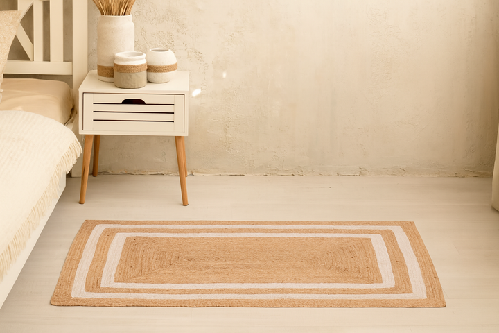 ALVA - Tapis rectangulaire en jute naturelle tissée marron 120 x 80 cm