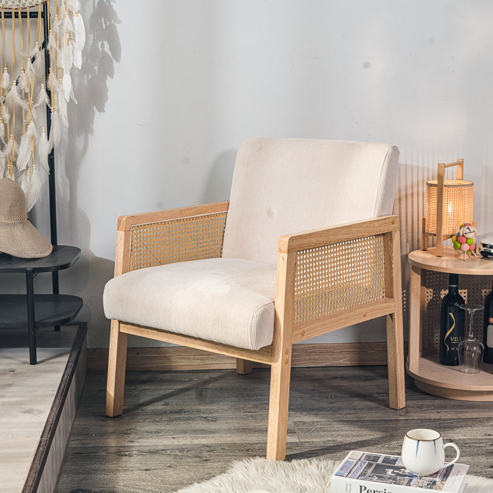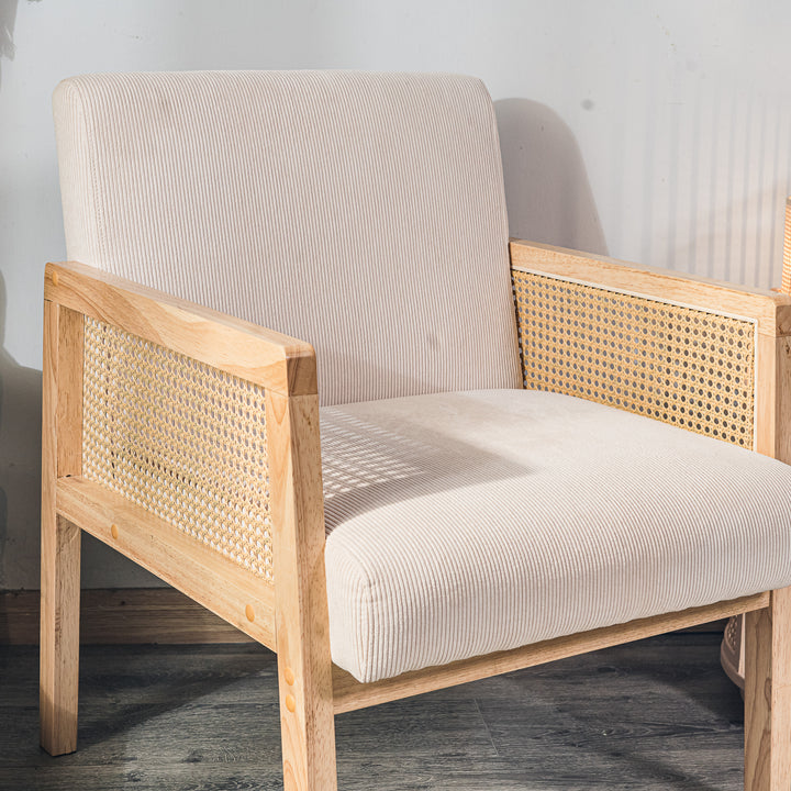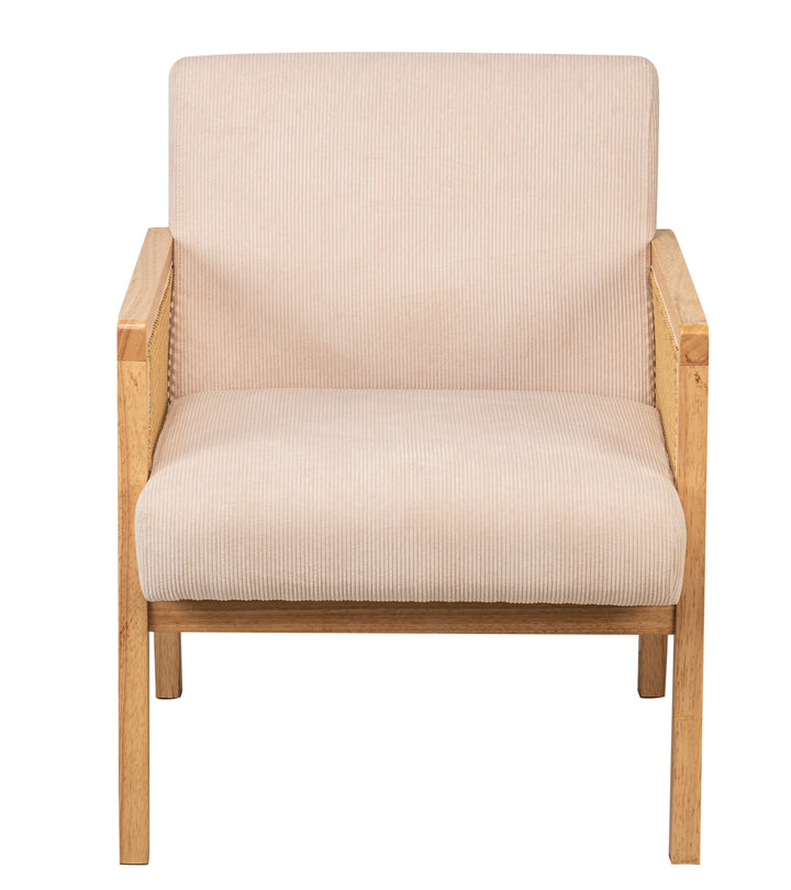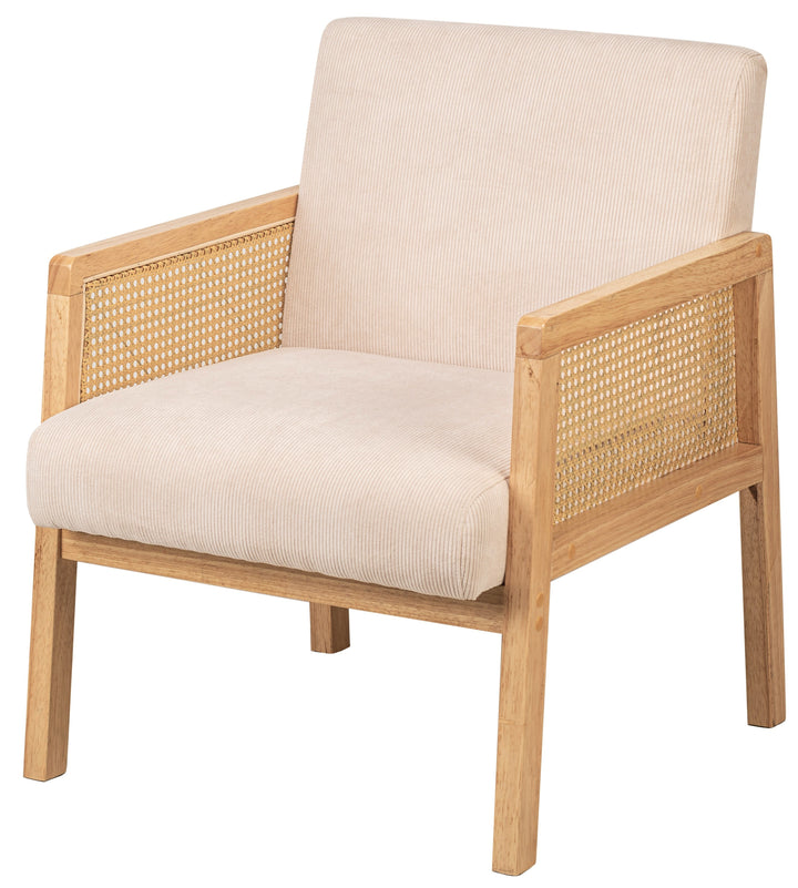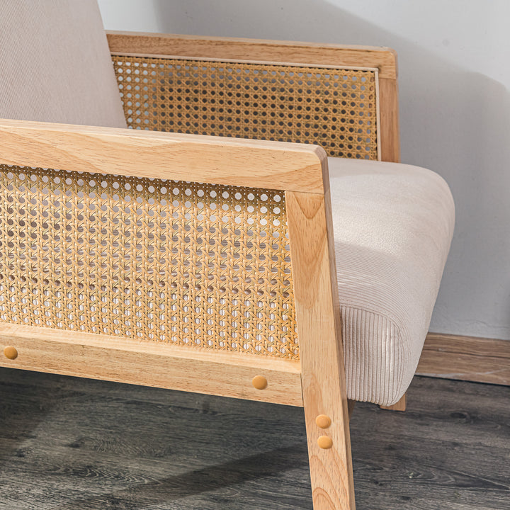 BORGO - Fauteuil de salon en bois massif et cannage beige