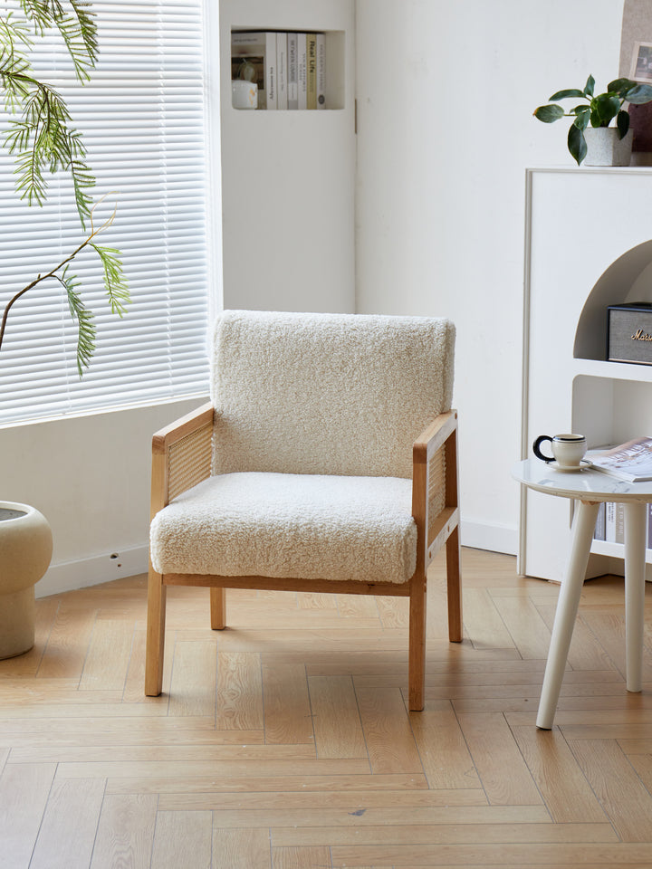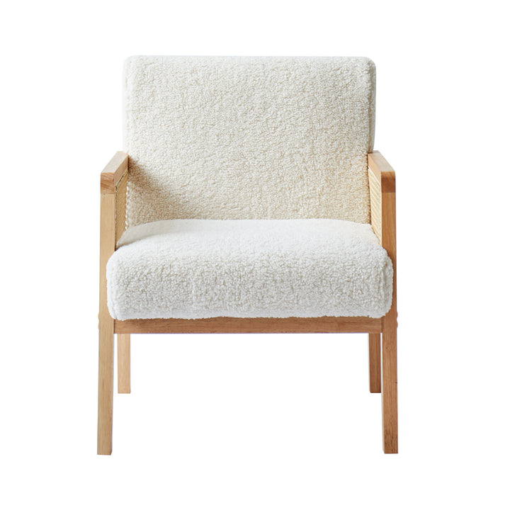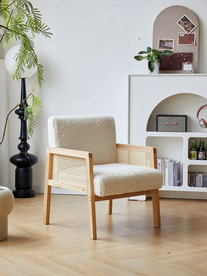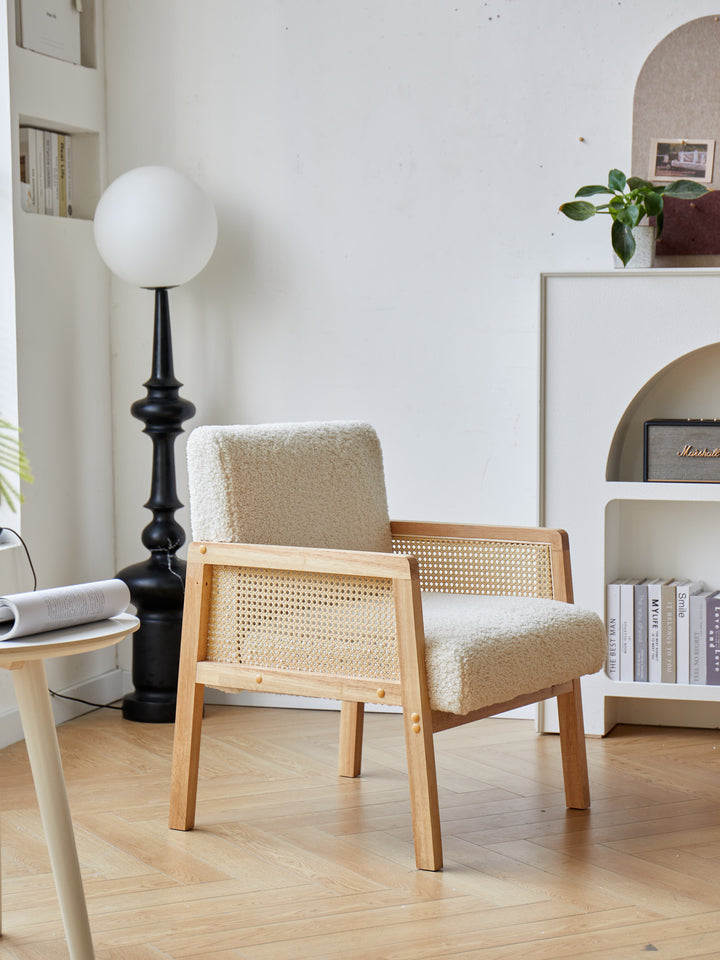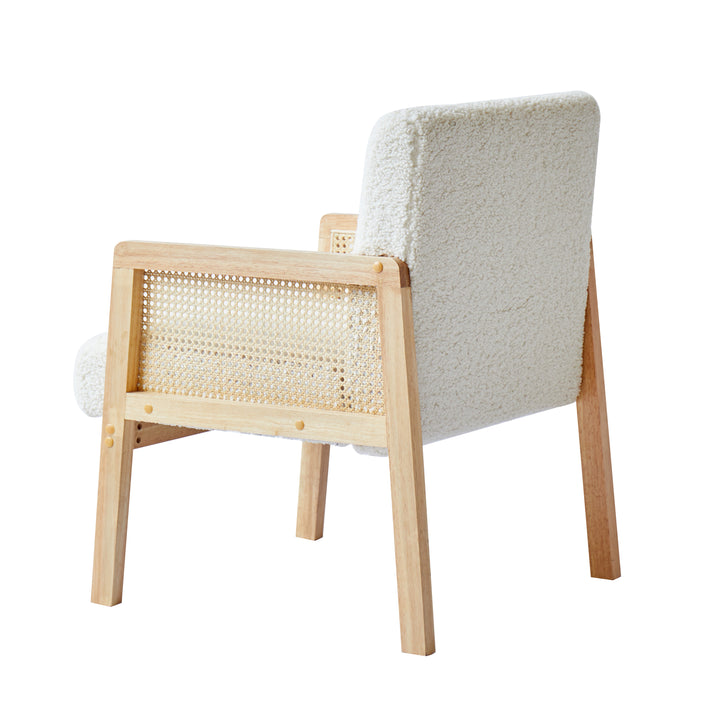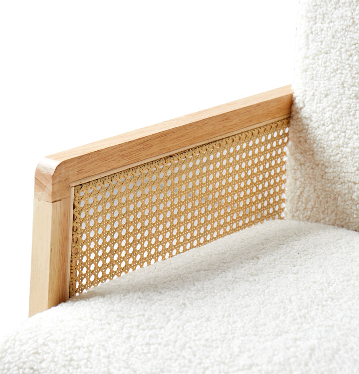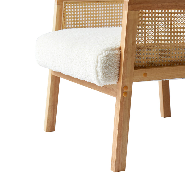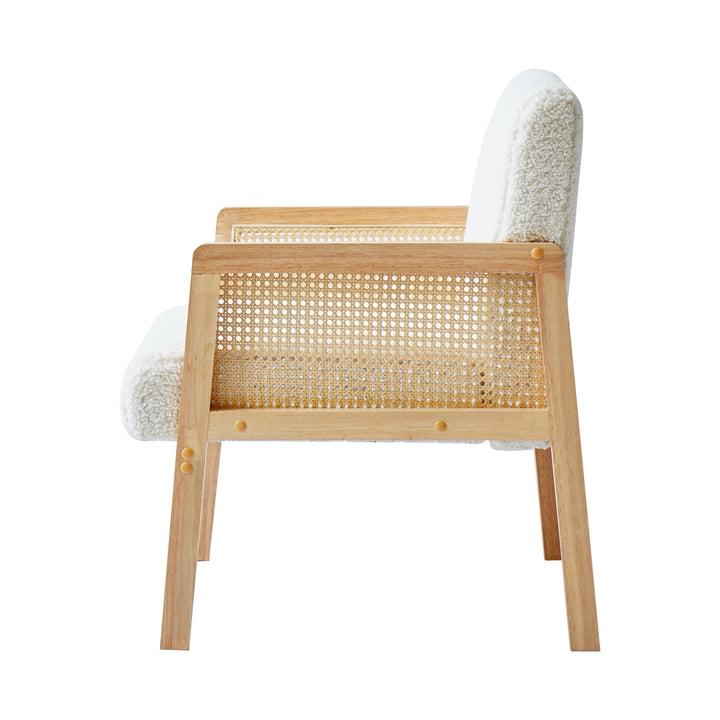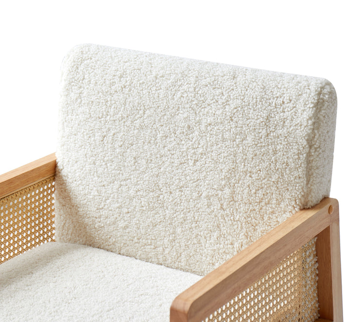 BORGO - Fauteuil de salon en bois massif et cannage blanc