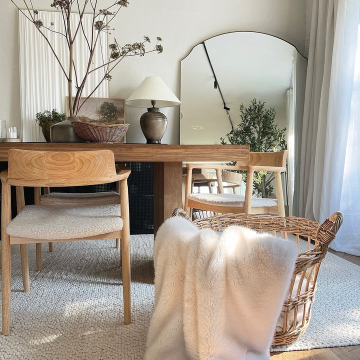 CORDOBA - Lot de 2 chaises en bois massif avec accoudoirs et bouclettes blanches