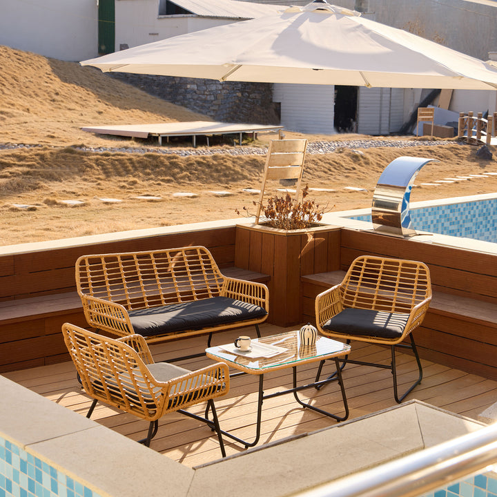 DANANG - Salon de jardin en rotin et metal noir
