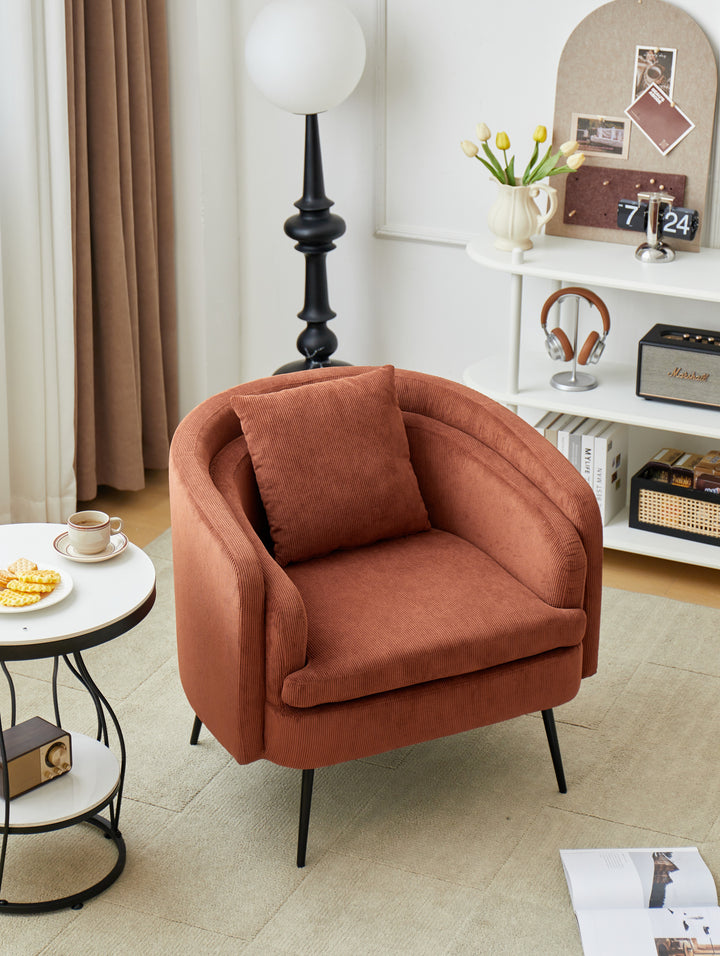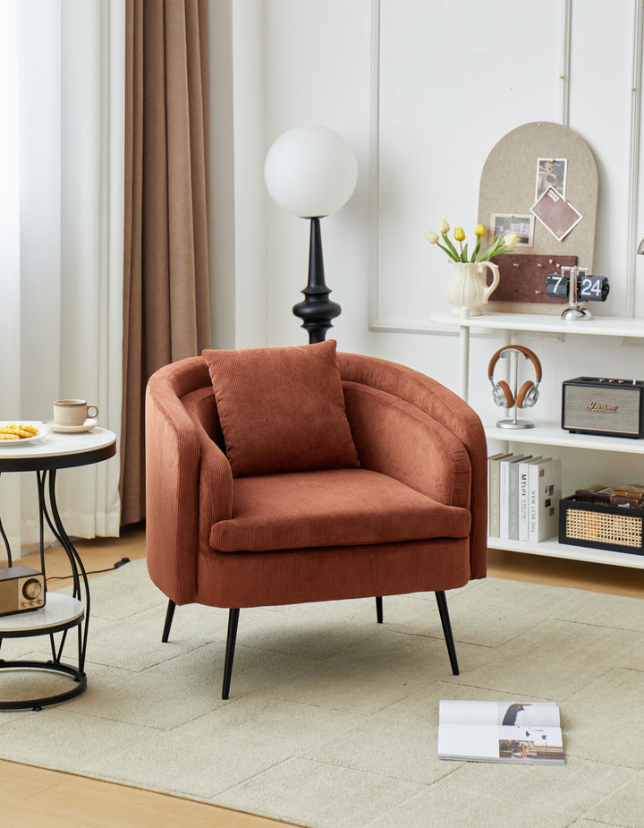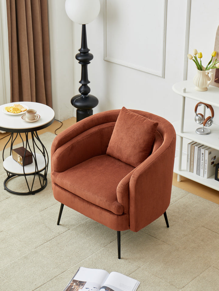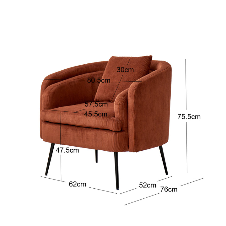 DUKE - Fauteuil de salon en métal et velours côtelé terracotta