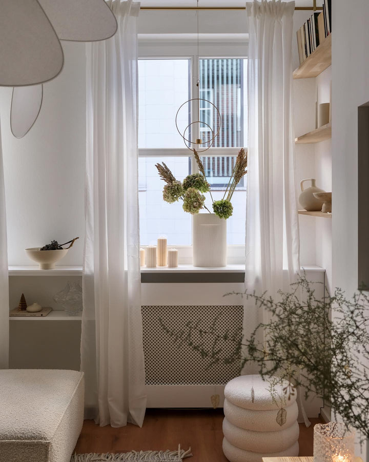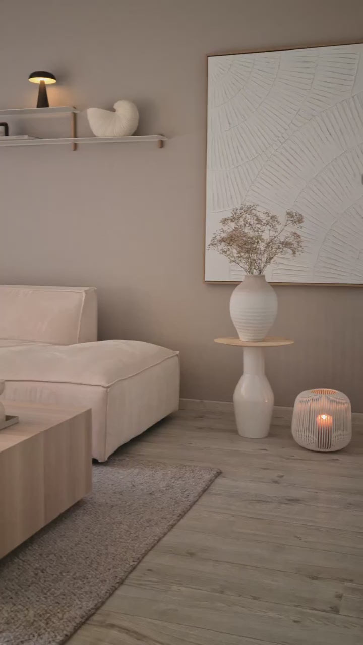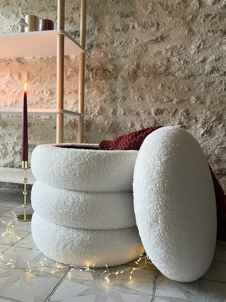 FLOKKE - Pouf avec rangement en bouclettes blanches style scandinave