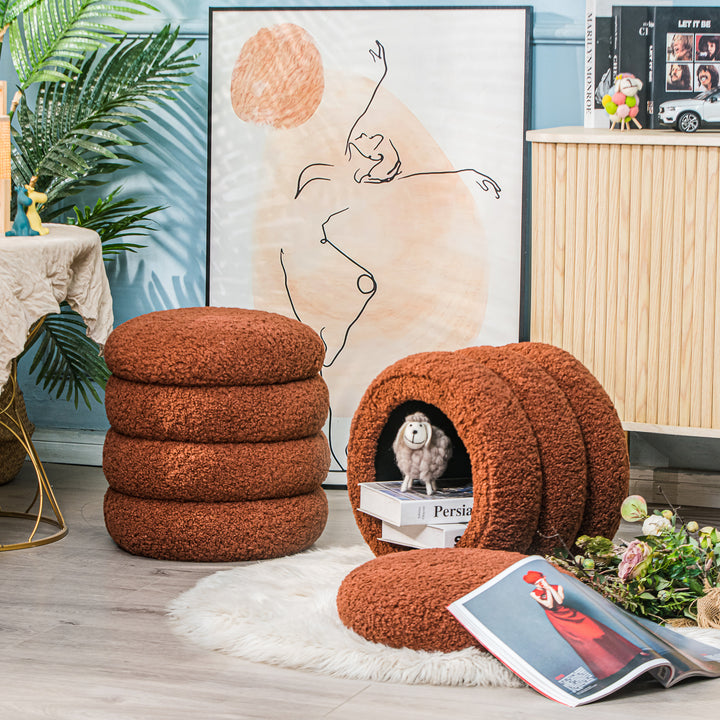 FLOKKE - Pouf en bouclettes terracotta style scandinave