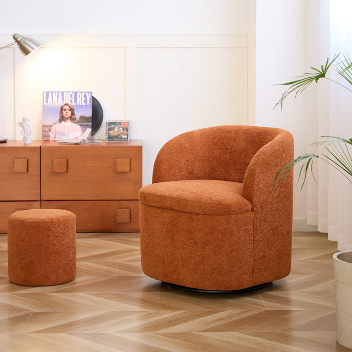 HALMSTAD - Fauteuil de salon pivotant et pouf en tissu terracotta
