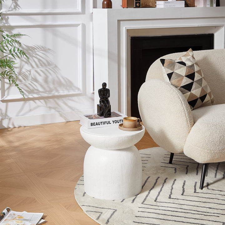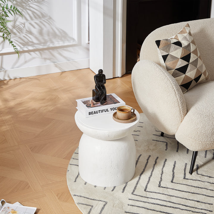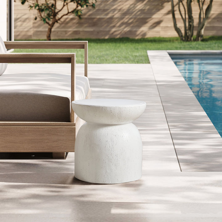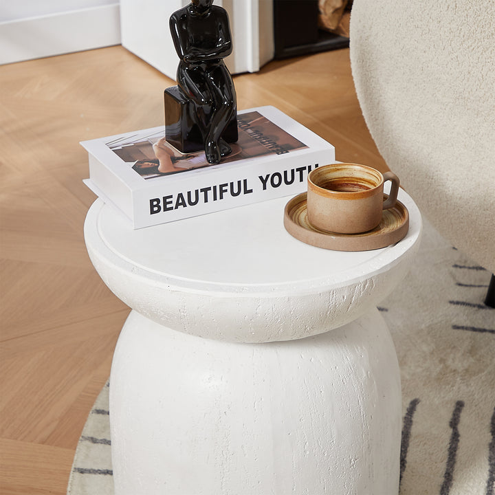 HJORRING - Table d'appoint bout de canapé intérieur extérieur en magnesite blanc