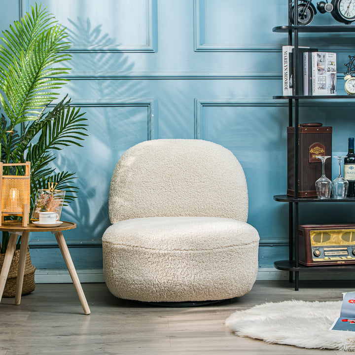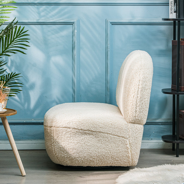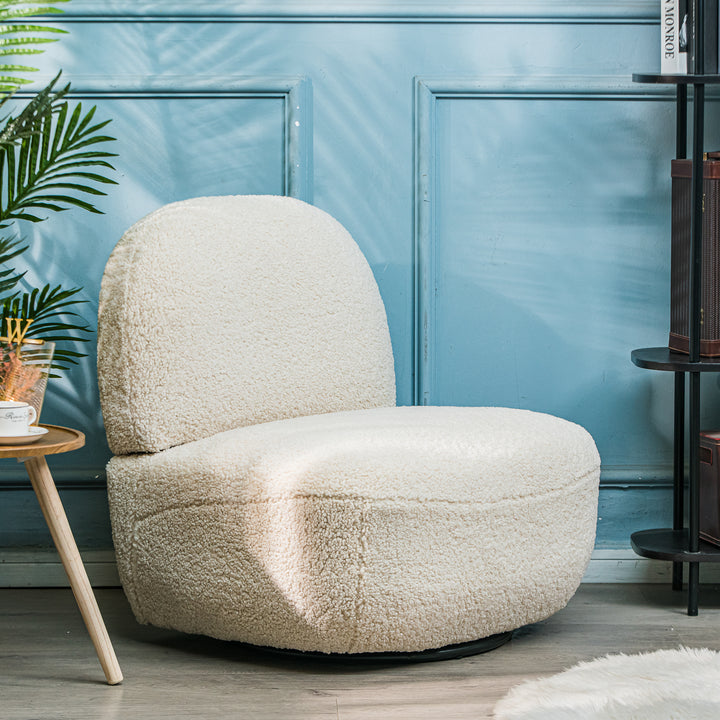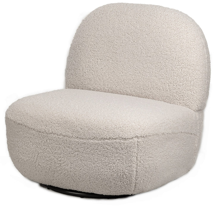KAMPALA - Fauteuil de salon pivotant swivel en bouclettes blanches