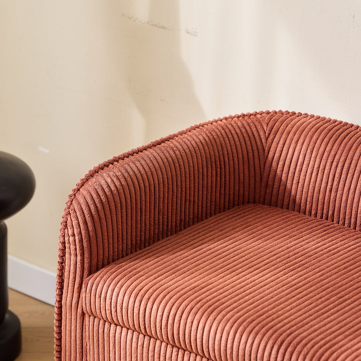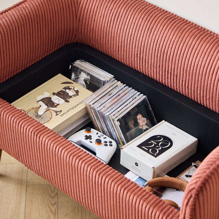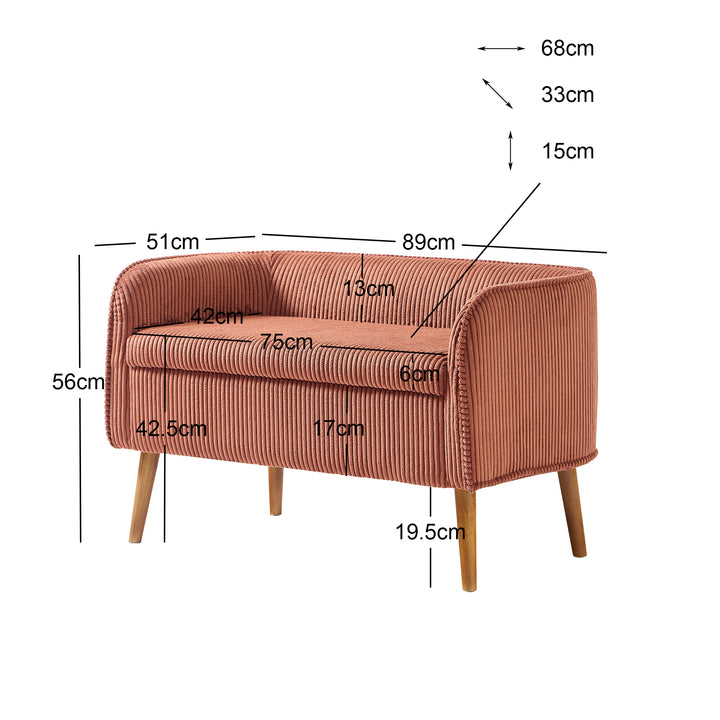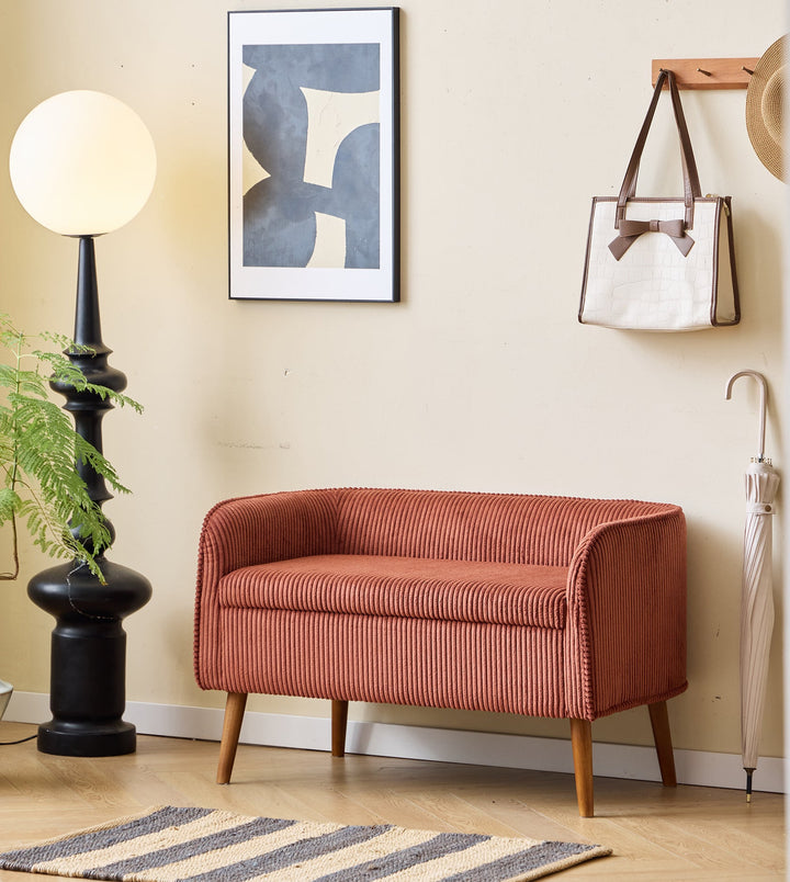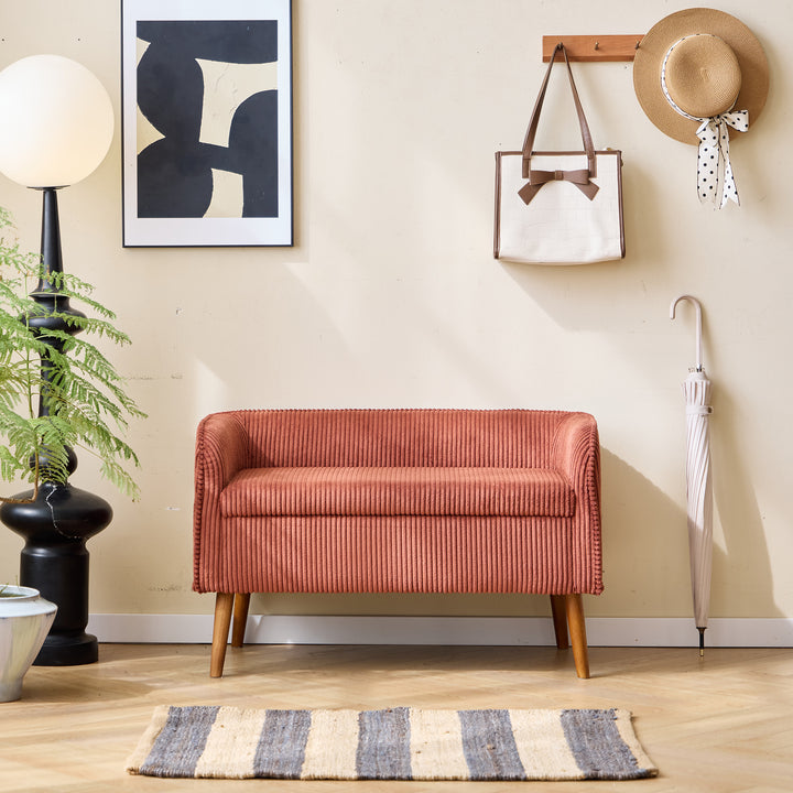 KIRKENES - Banc coffre en bois et velours côtelé terracotta