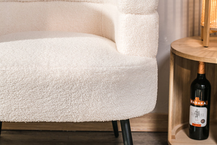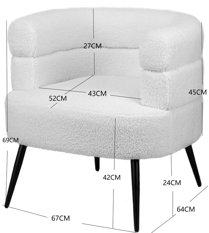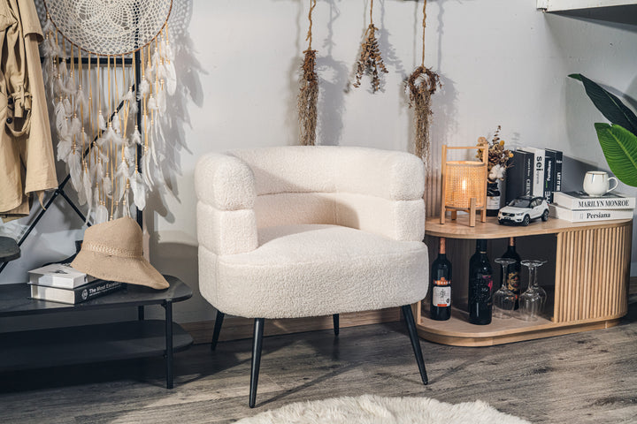 KORGEN - Fauteuil de salon en métal et bouclettes blanches