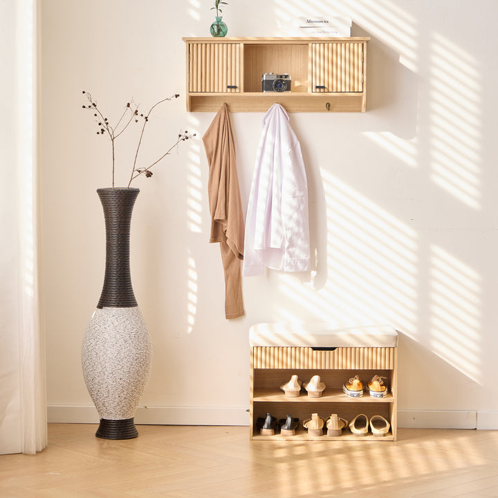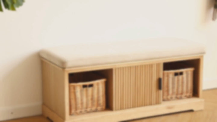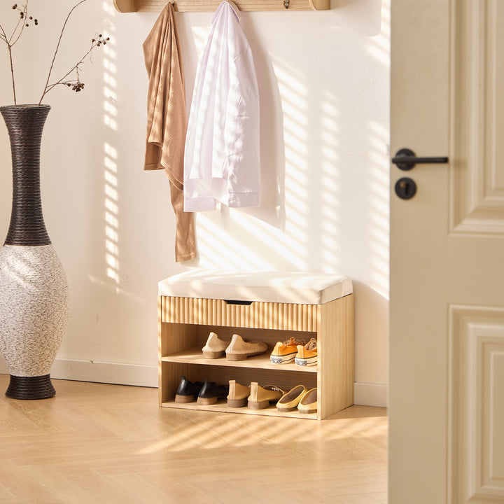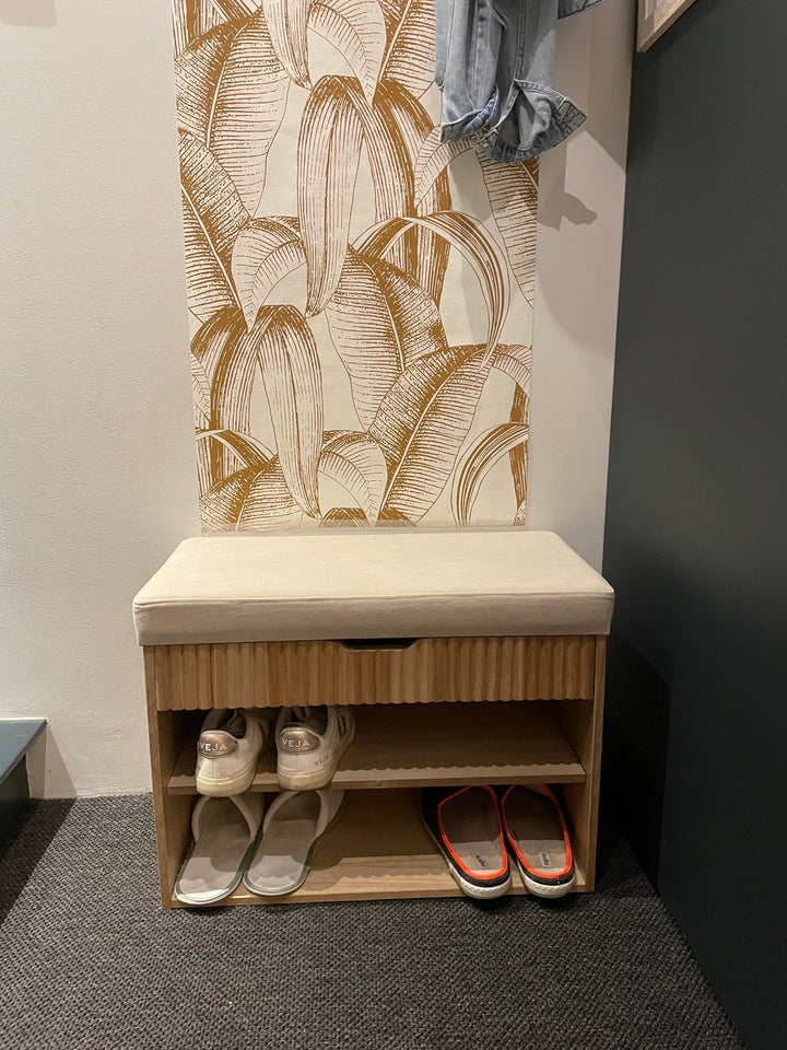 KUBO - Meuble à chaussures avec coffre en bois et velours beige