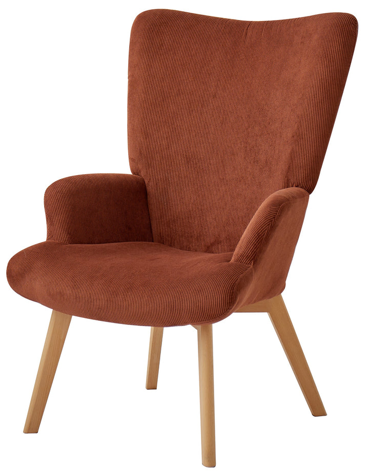 MALMO - Fauteuil de salon en bois massif et velours côtelé terracotta