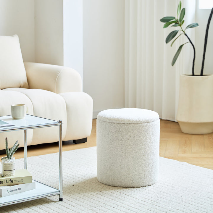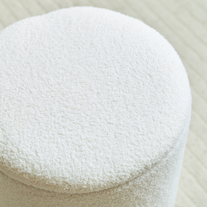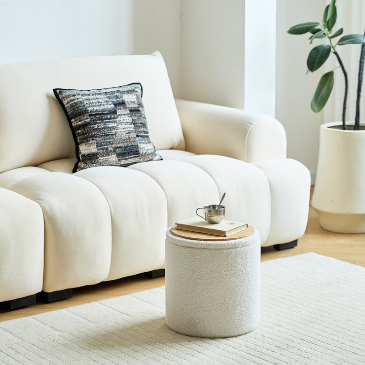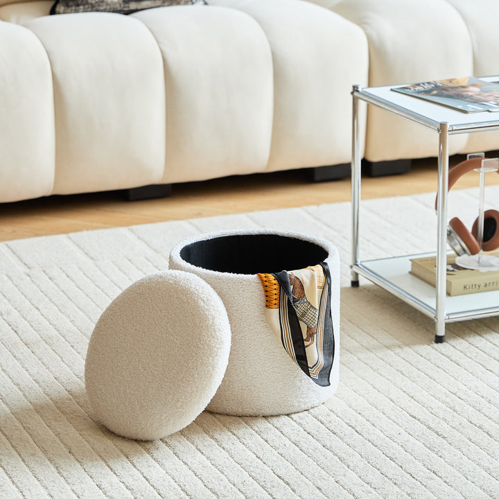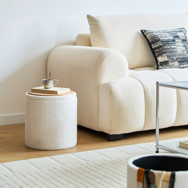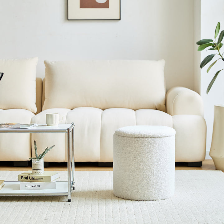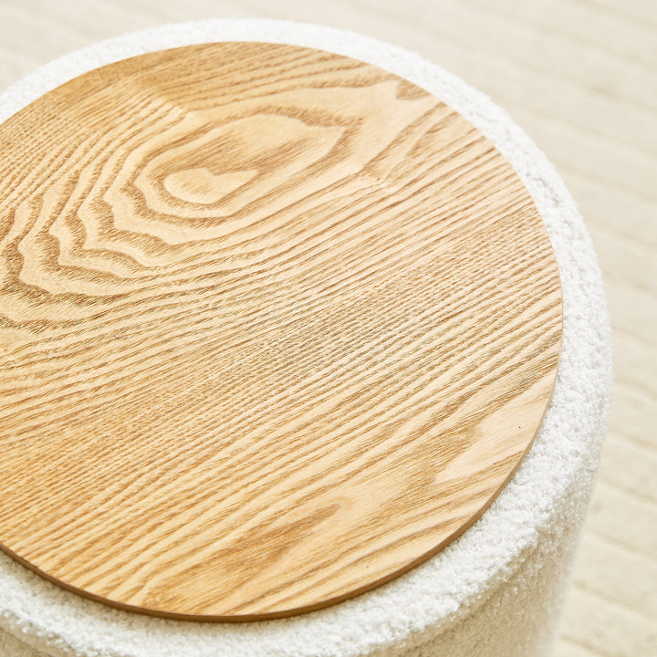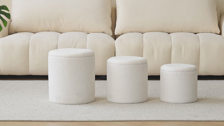NARVIK - Set de 3 poufs avec rangement en bois et bouclettes blanches