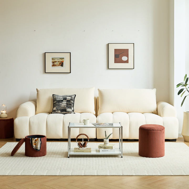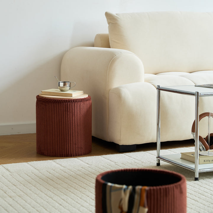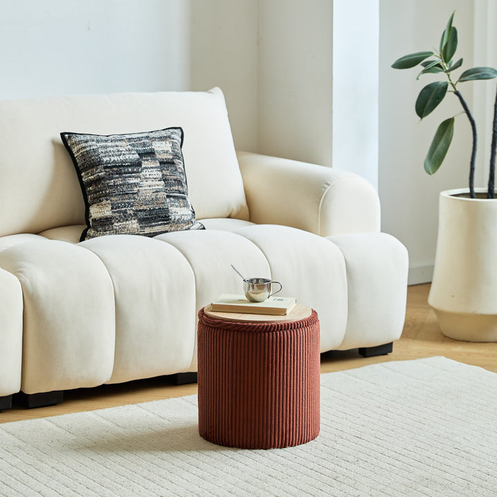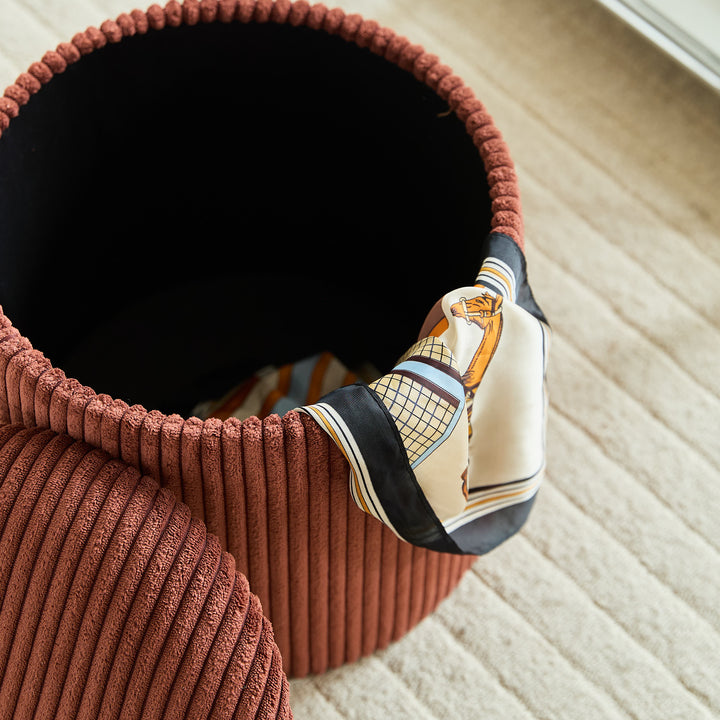NARVIK - Set de 3 poufs avec rangement en bois et velours côtelé terracotta
