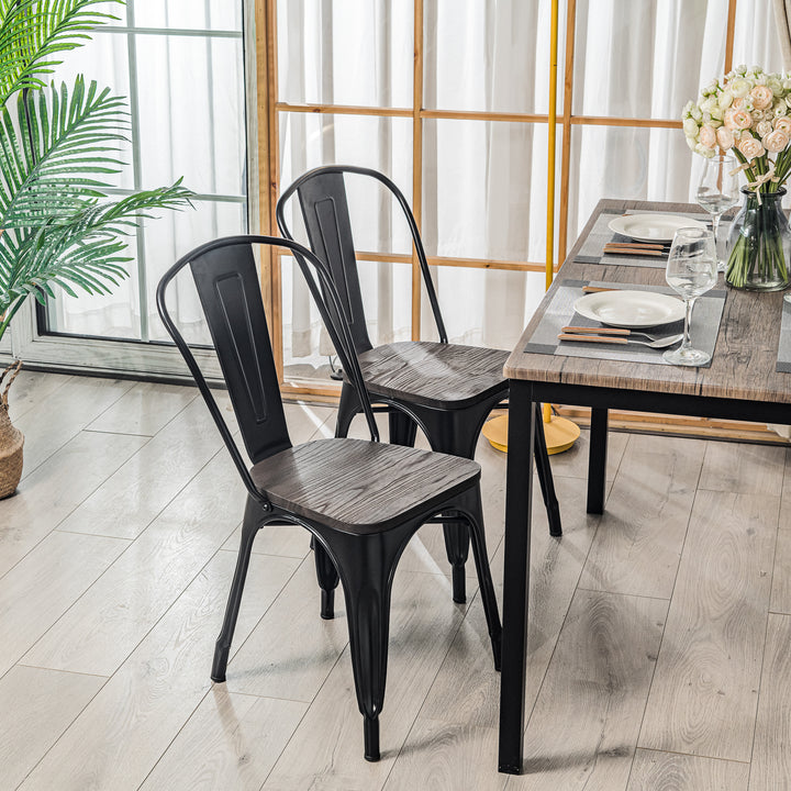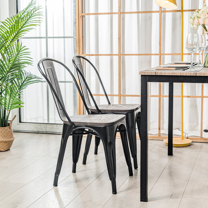 NASH - Lot de 4 chaises industrielles en métal et bois noir