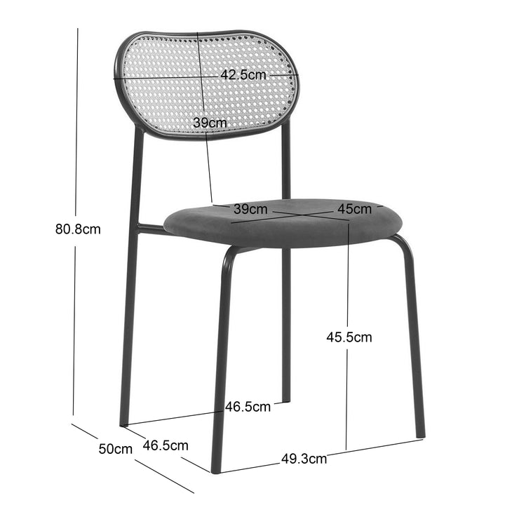 OREBRO - Lot de 2 chaises en métal et cannage avec assise en bouclettes blanches