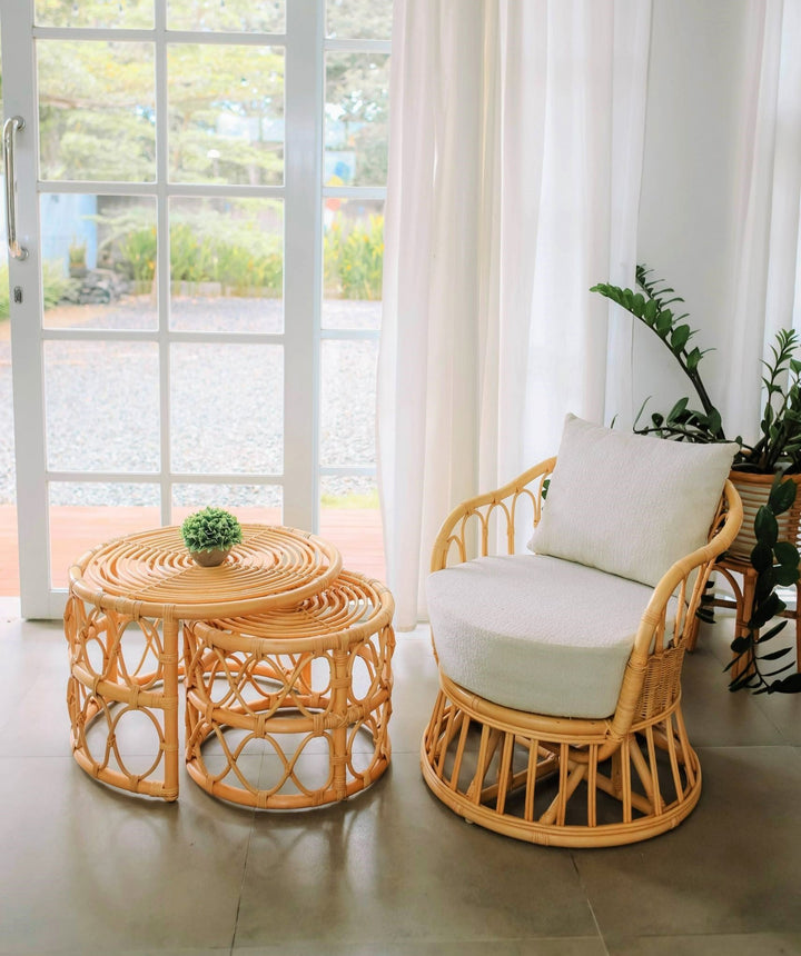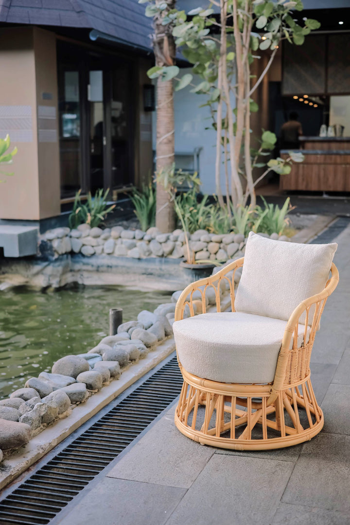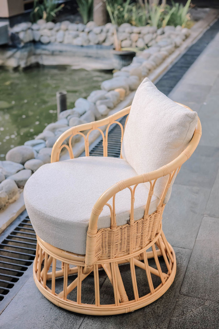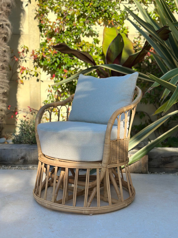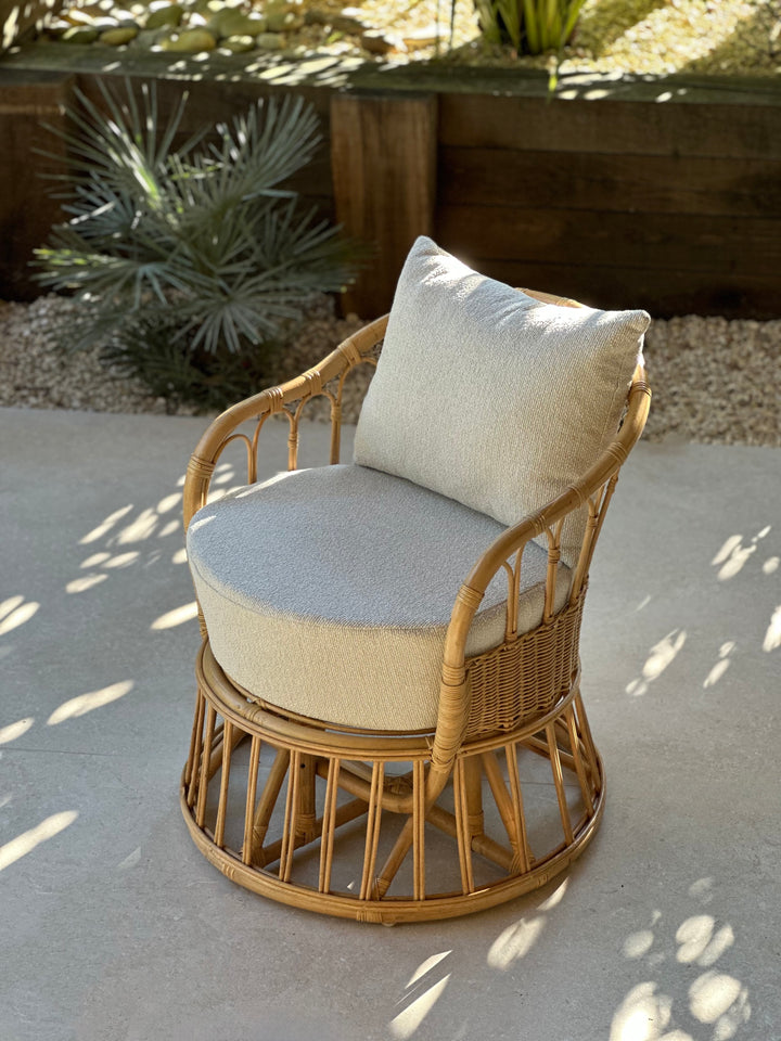 PALOPO - Fauteuil en rotin naturel et tissu beige