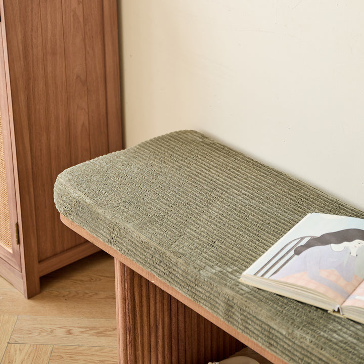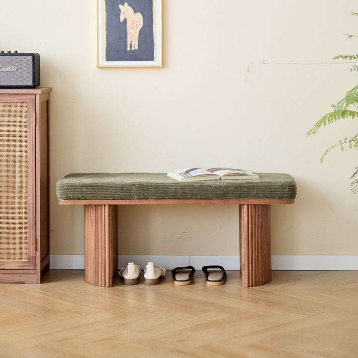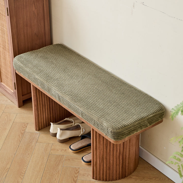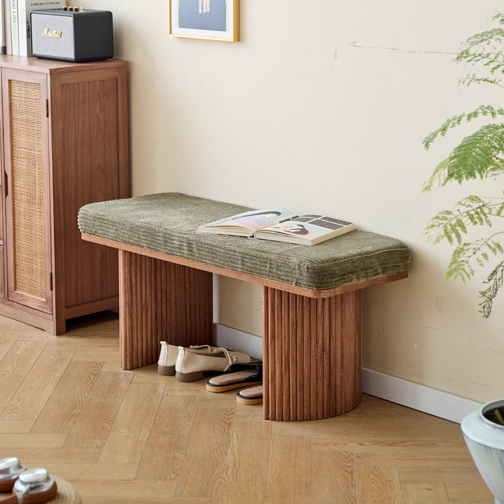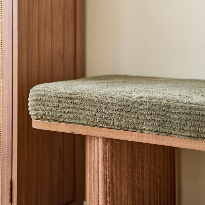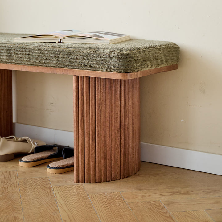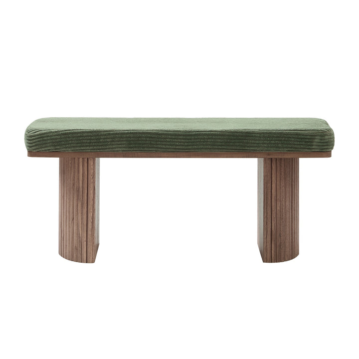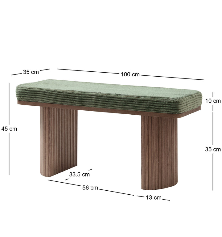 PIREUS - Banc en bois massif et velours côtelé vert