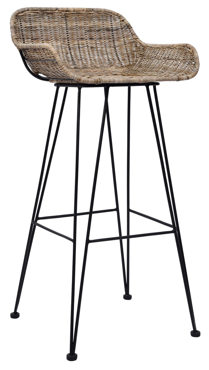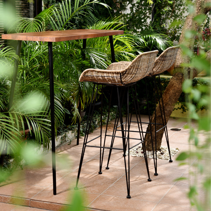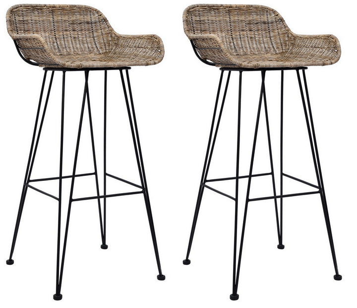 REOK - Lot de 2 tabourets de bar en métal et fibres naturelles