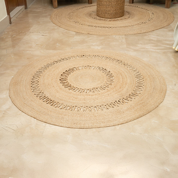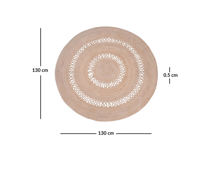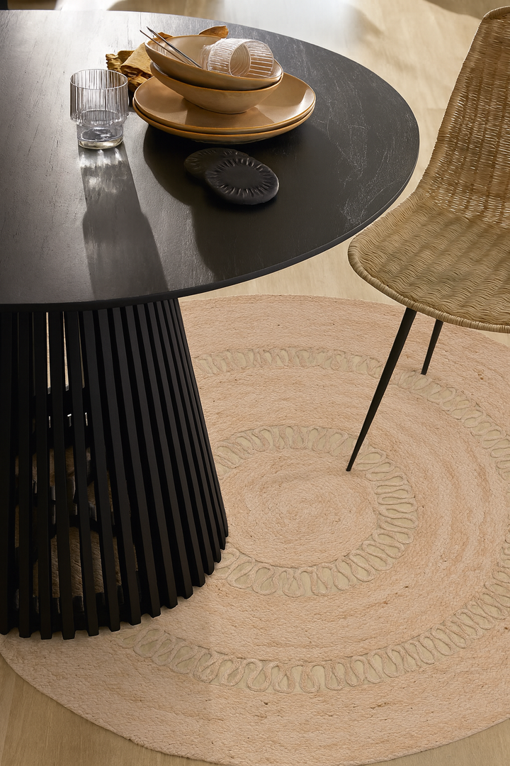 RUNE - Tapis rond en jute naturelle tissée marron 130 x 130 cm