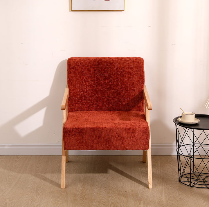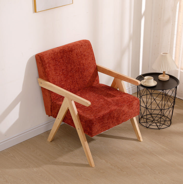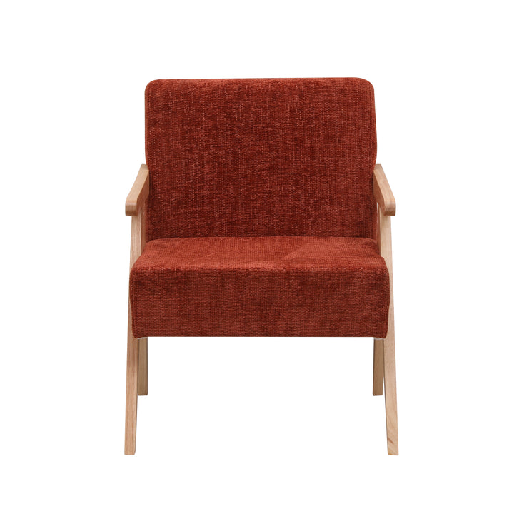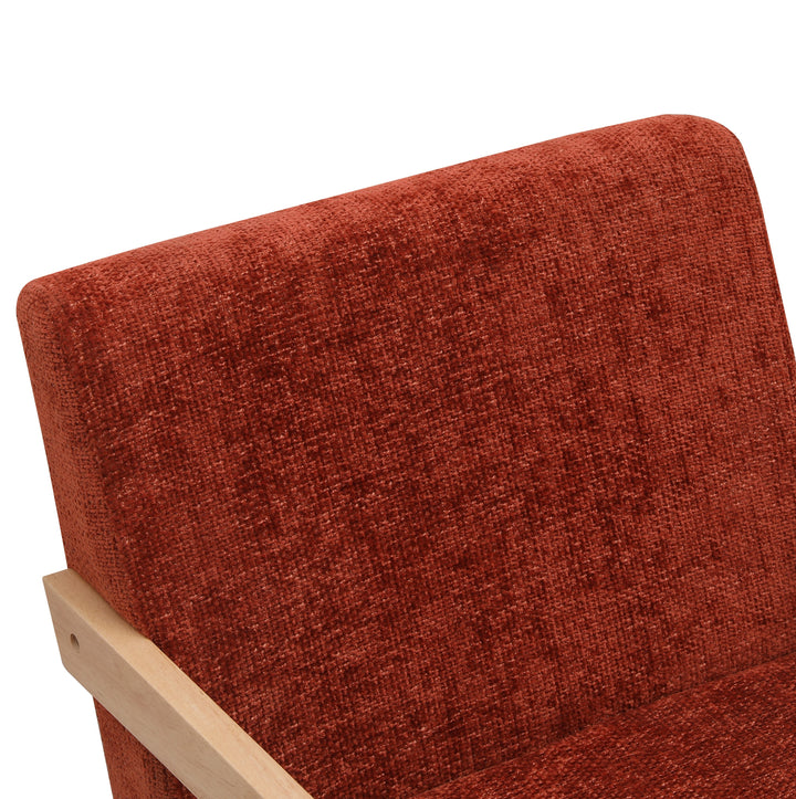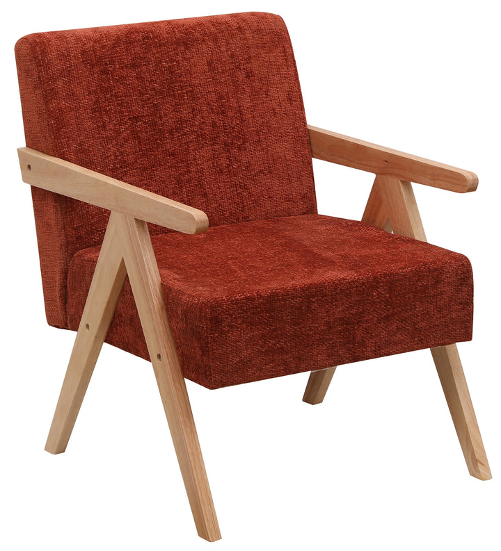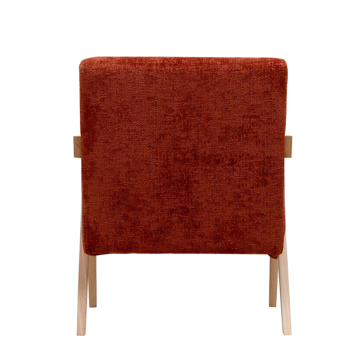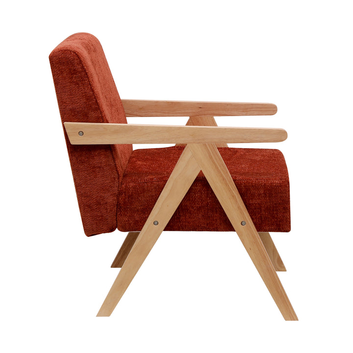 SANTAREM - Fauteuil de salon en bois massif et bouclettes terracotta