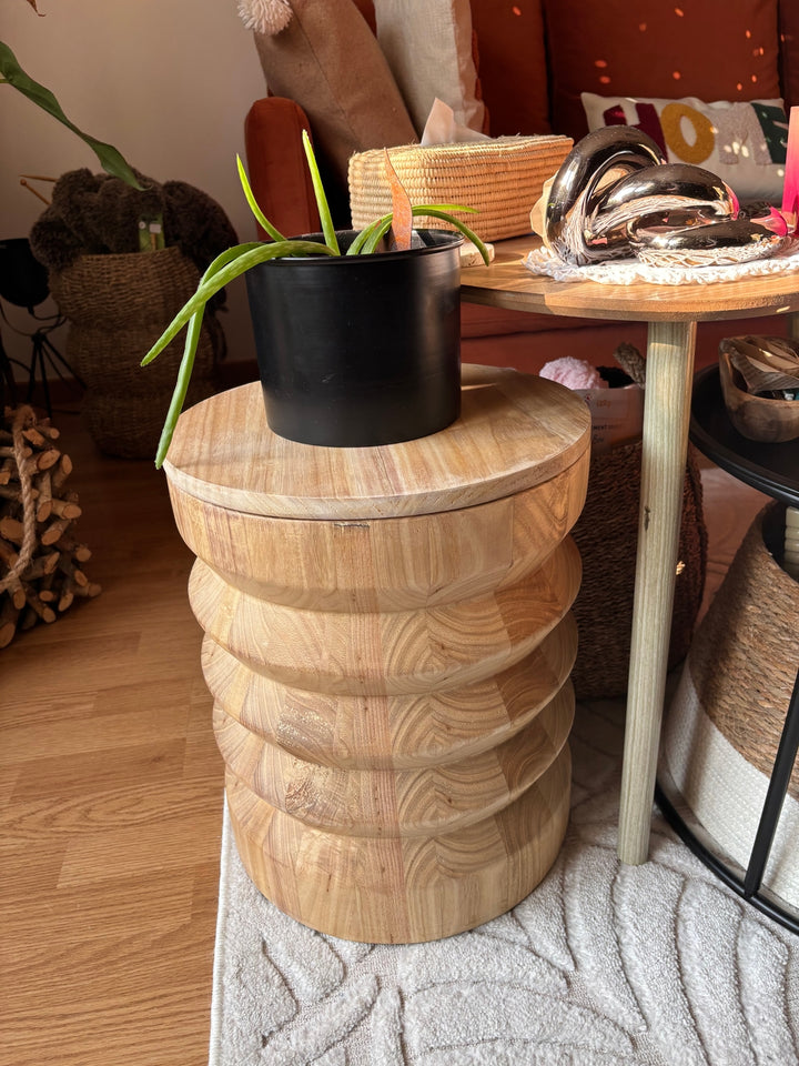 SANTIAGO - Pouf bout de canapé en bois massif avec rangement