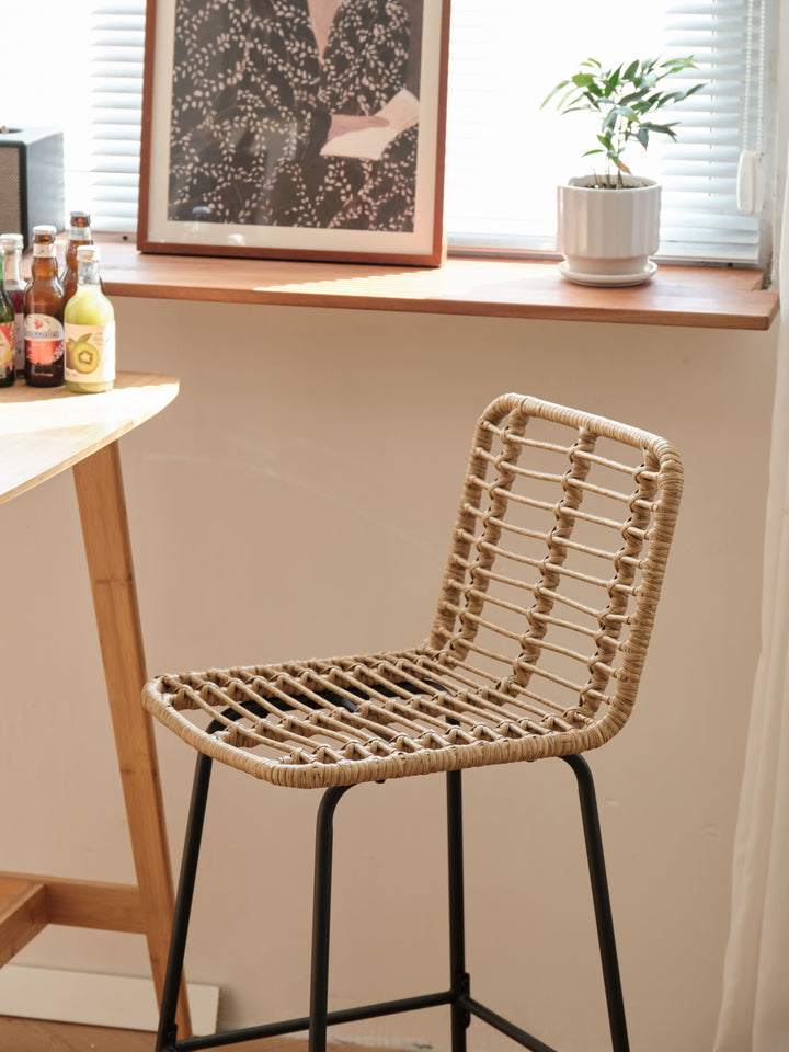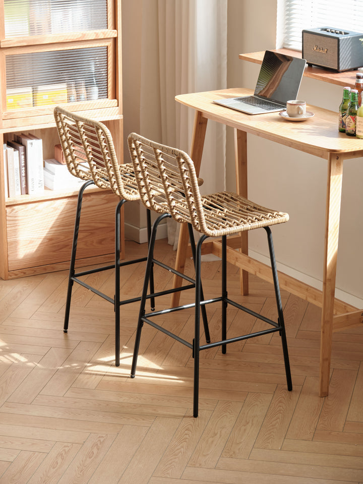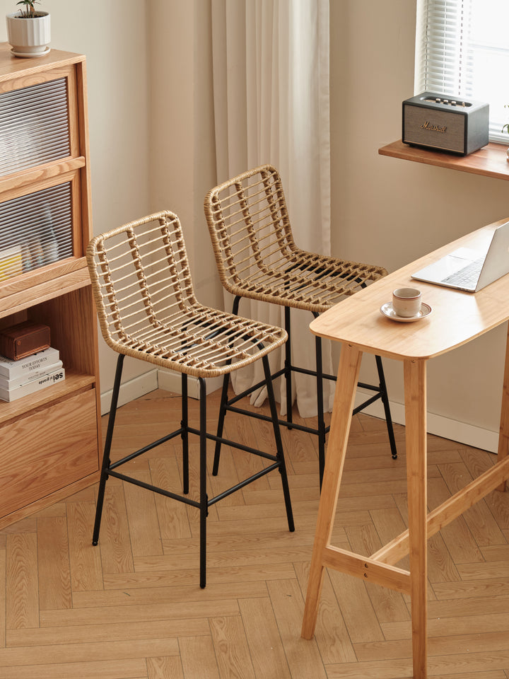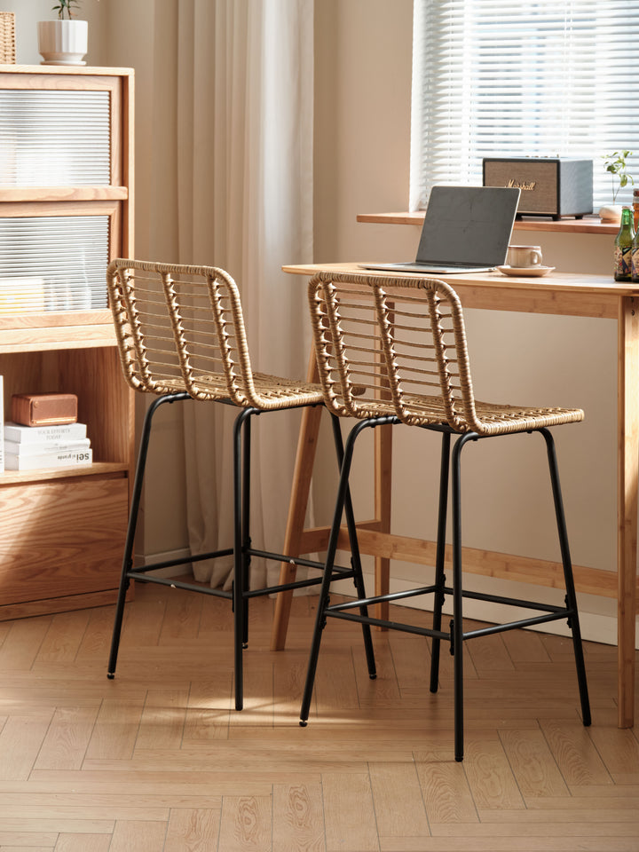 BANGKOK - Lot de 2 tabourets de bar en métal et rotin
