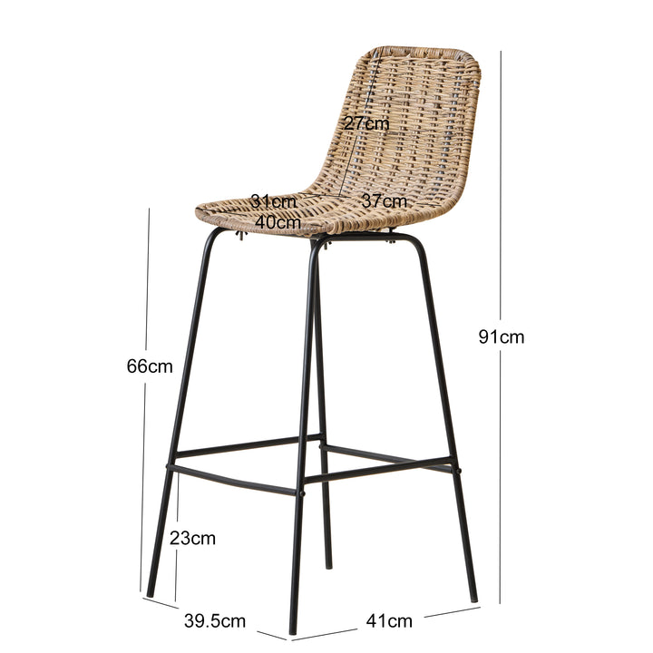 PENANG - Lot de 2 tabourets de bar en métal et fibres naturelles