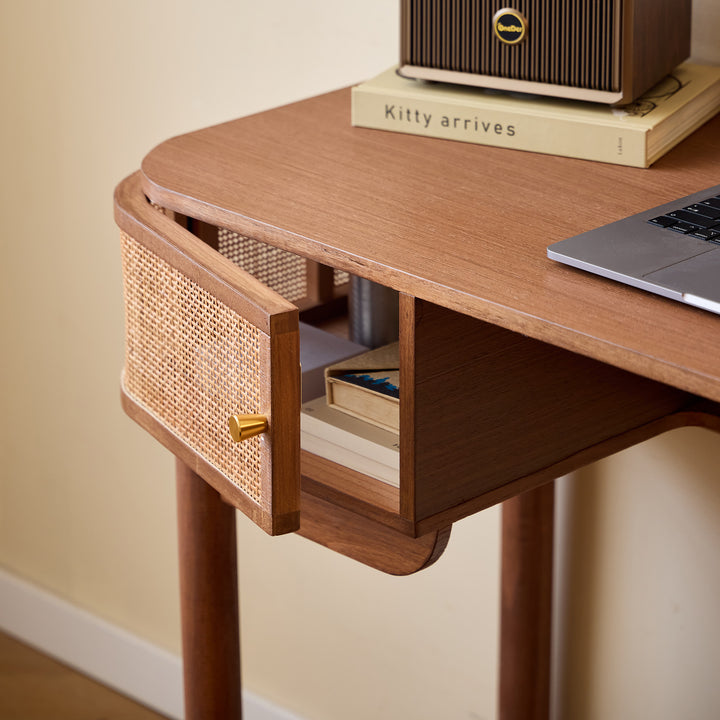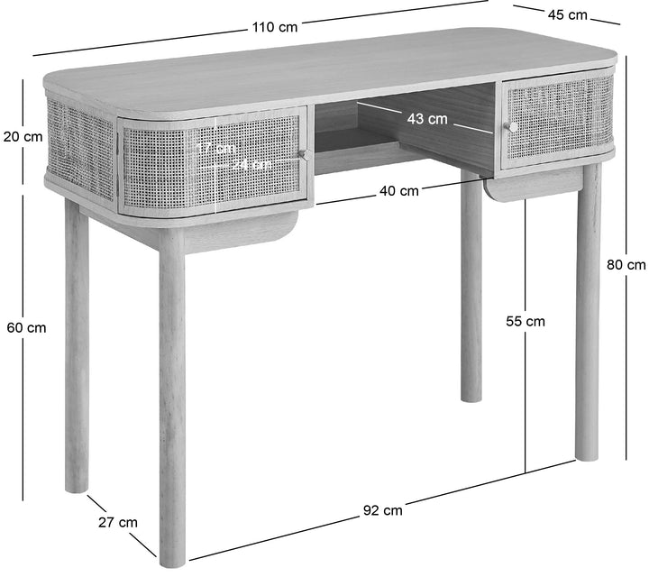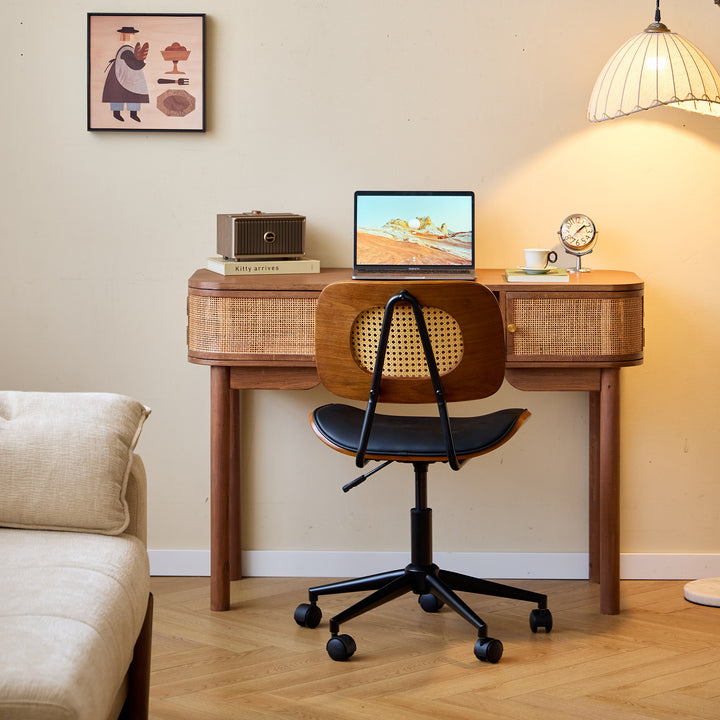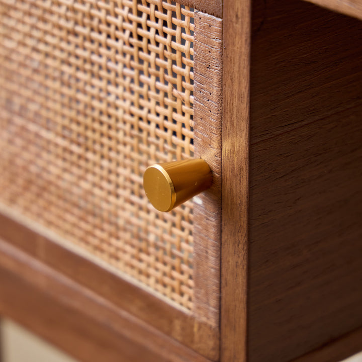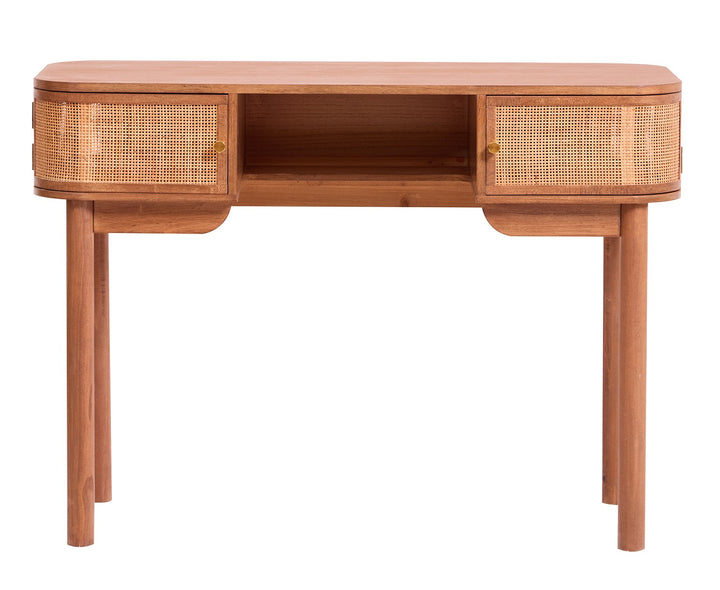 TOYAMA - Bureau 2 portes en bois finition noyer et cannage