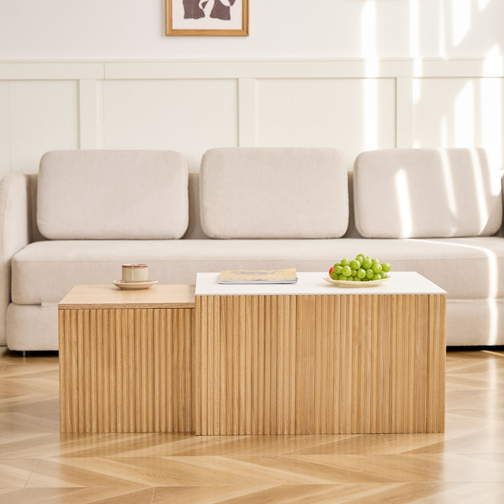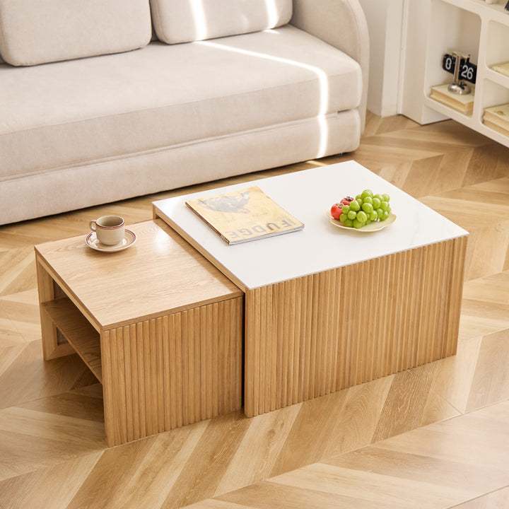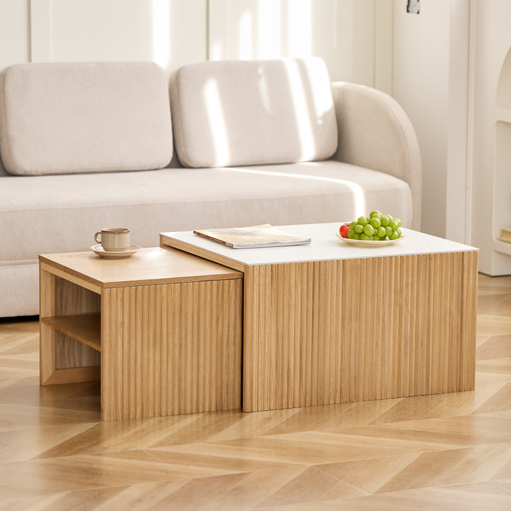 TROMSO - Set de 2 tables basses gigognes en bois et effet marbre