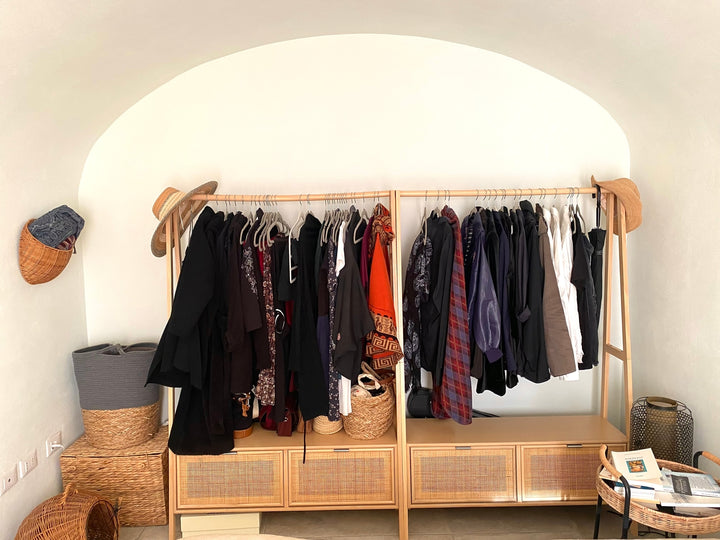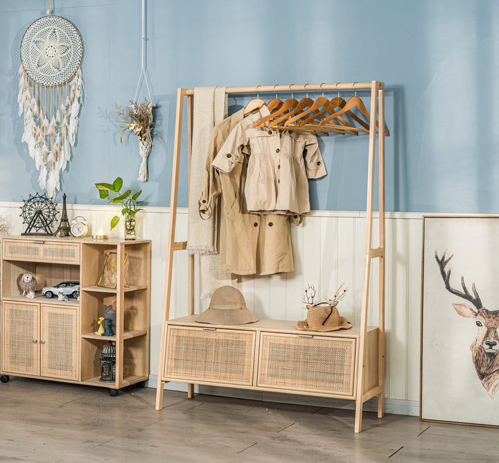 TURKU - Portant vestiaire en bois massif et rotin