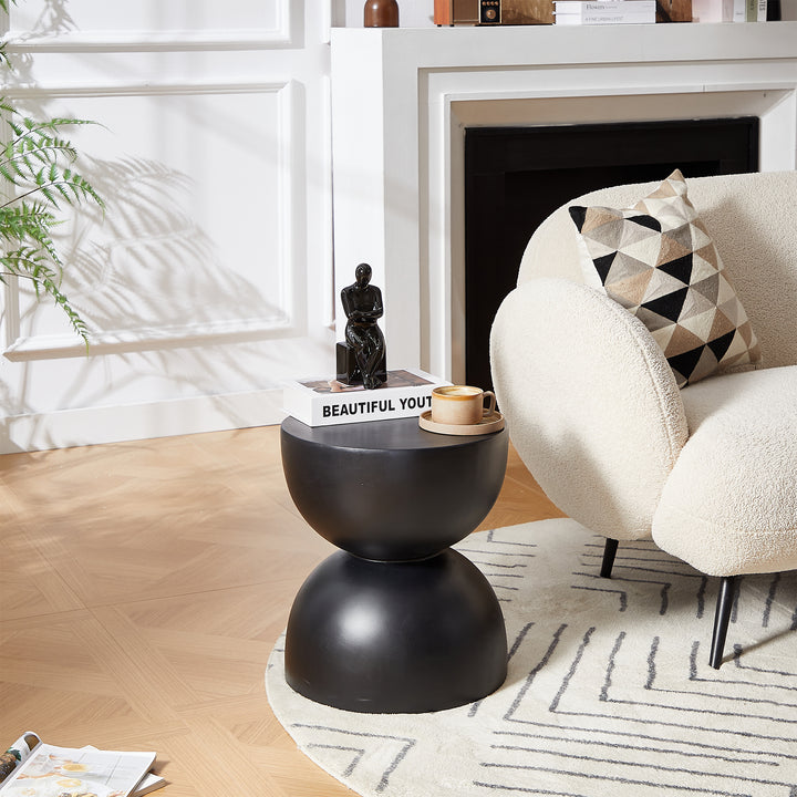 VEJEN - Table d'appoint bout de canapé intérieur extérieur en magnesite noir