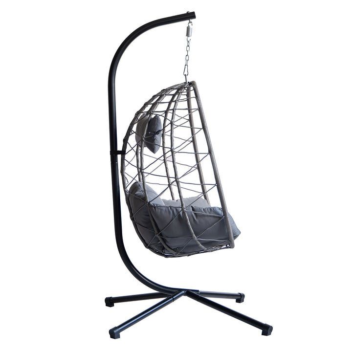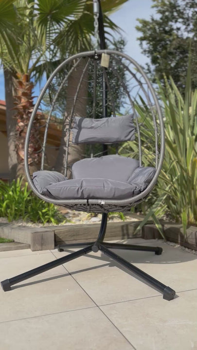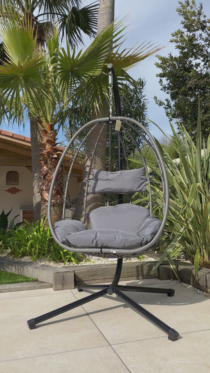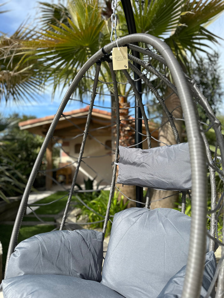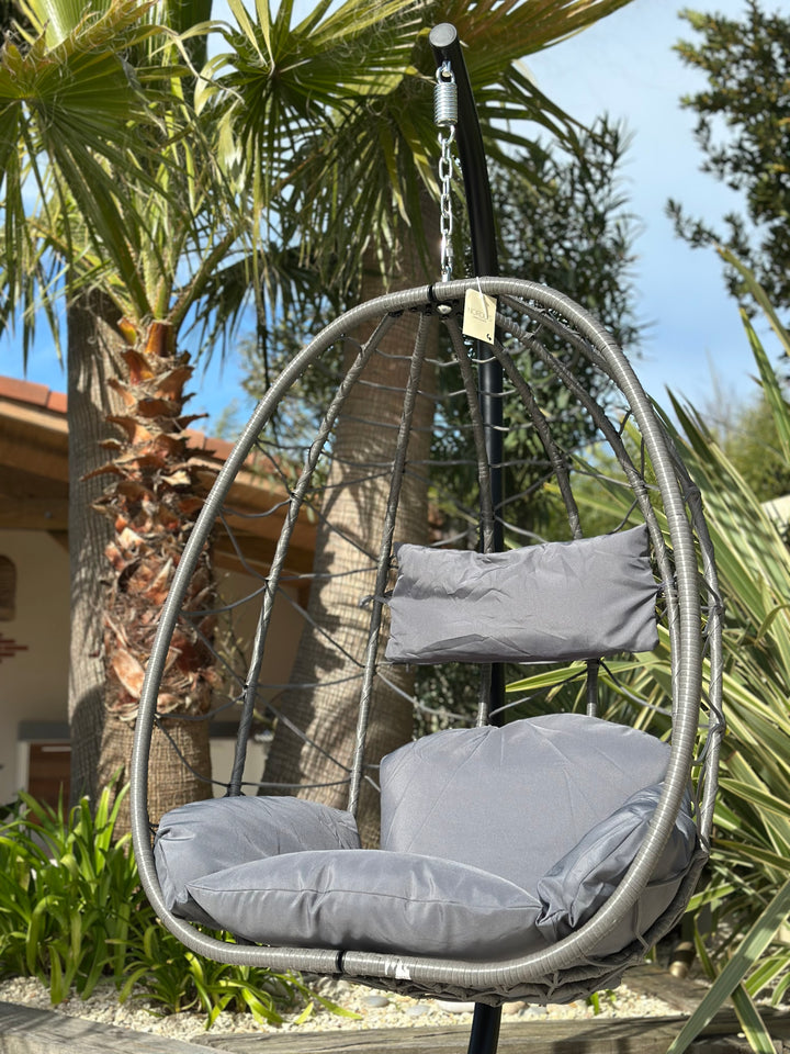 VENICE - Fauteuil suspendu en rotin et metal noir