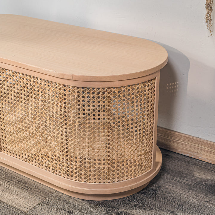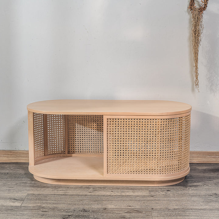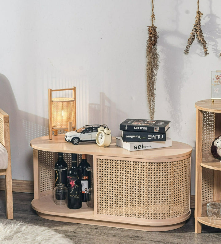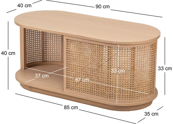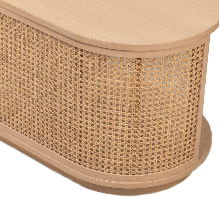 VIKNA - Table basse en frêne massif et rotin naturel