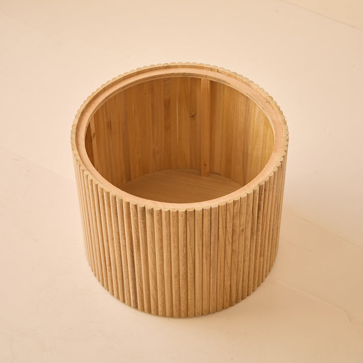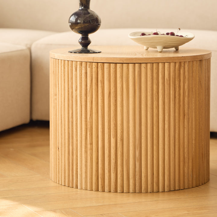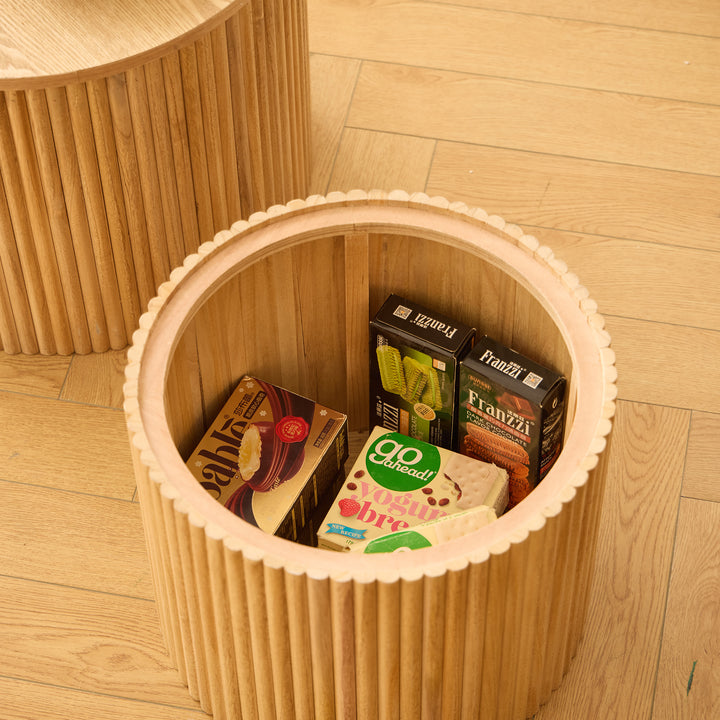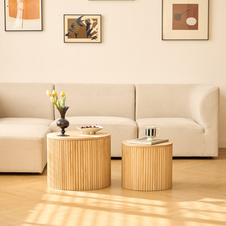 YATOMI - Set de 2 tables basses rondes en bois massif avec rangement